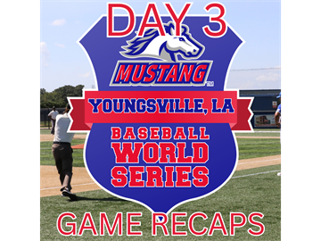 Congratulations to Youngsville, LA on their 2025 Mustang World Series Appearance! The team finished with a 1-2 record, and have been eliminated from the tournament. Los Mochis, Mexico will face West Convina, CA on August 3rd at 12:30PM.