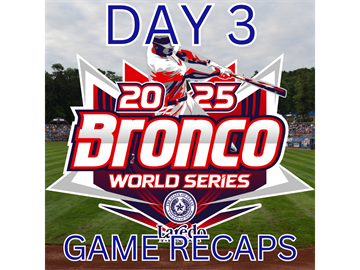 Laredo, TX will play Tokyo, Japan on August 3rd at 7:30PM. Congratulations to Venetia, PA on their 2025 Bronco World Series Appearance! The team finished with a 1-2 record, and have been eliminated from the tournament.